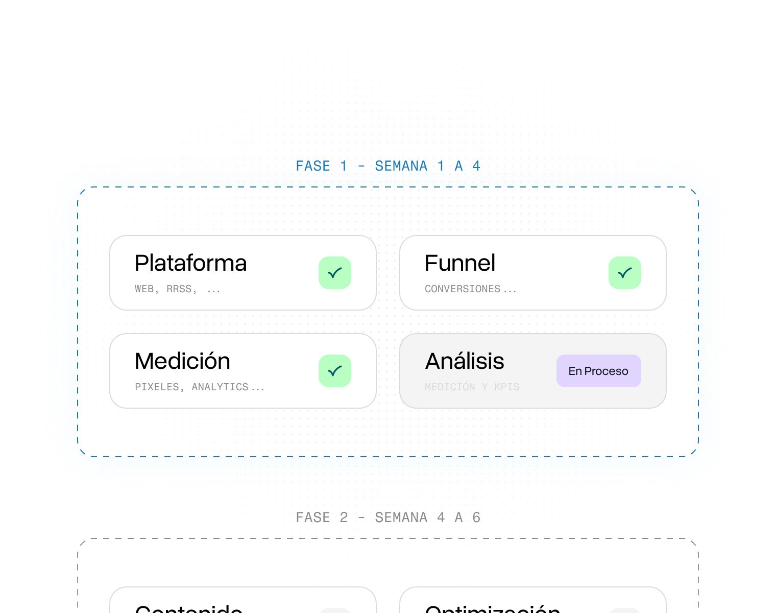 Recibes un plan claro con plazos, acciones y estimaciones de resultados esperados. Tú apruebas, nosotros ejecutamos.
