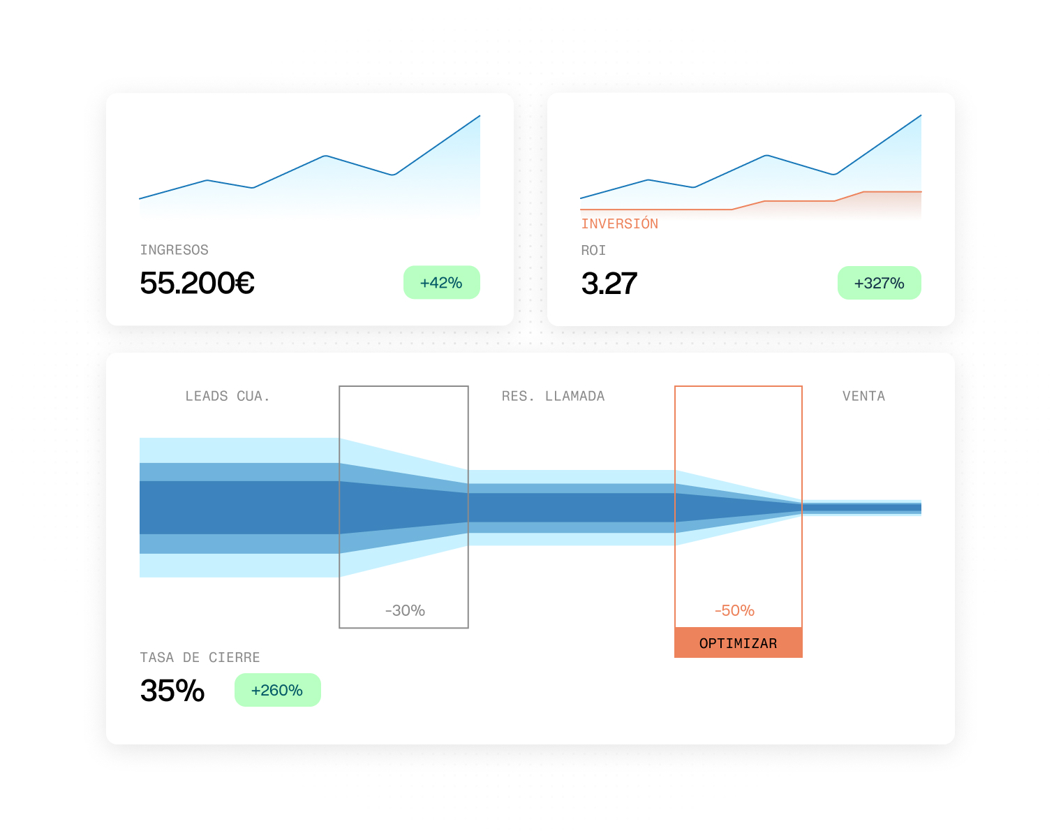 Te explicamos todo en lenguaje de negocio: clientes, llamadas, ventas y euros. Nada de métricas técnicas que no te dicen nada.