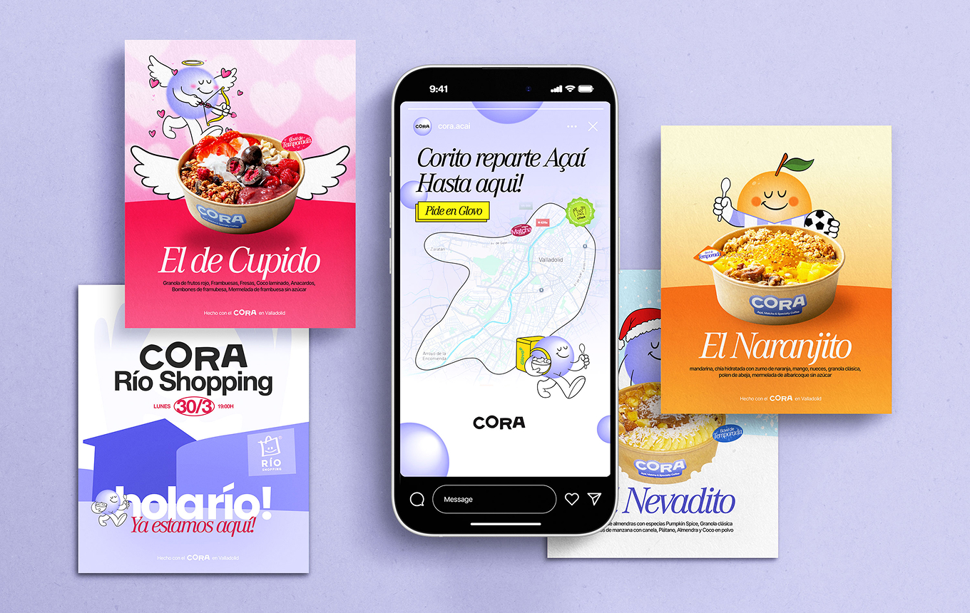 Paula llegó con la necesidad de crear una identidad visual potente para un local de Açaí, que iba a abrir en poco tiempo. Llego con la idea de fusionar Açaí, matcha y café en el mismo local, pero que no pareciese la tipica cafeteria de especialidad de cualquier ciudad grande. Queria un proyecto único, con identidad de Valladolid, ¡con identidad Pucelana!