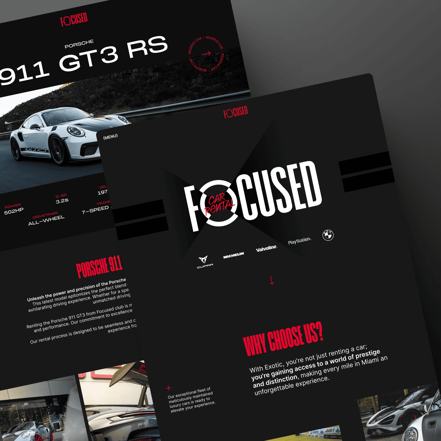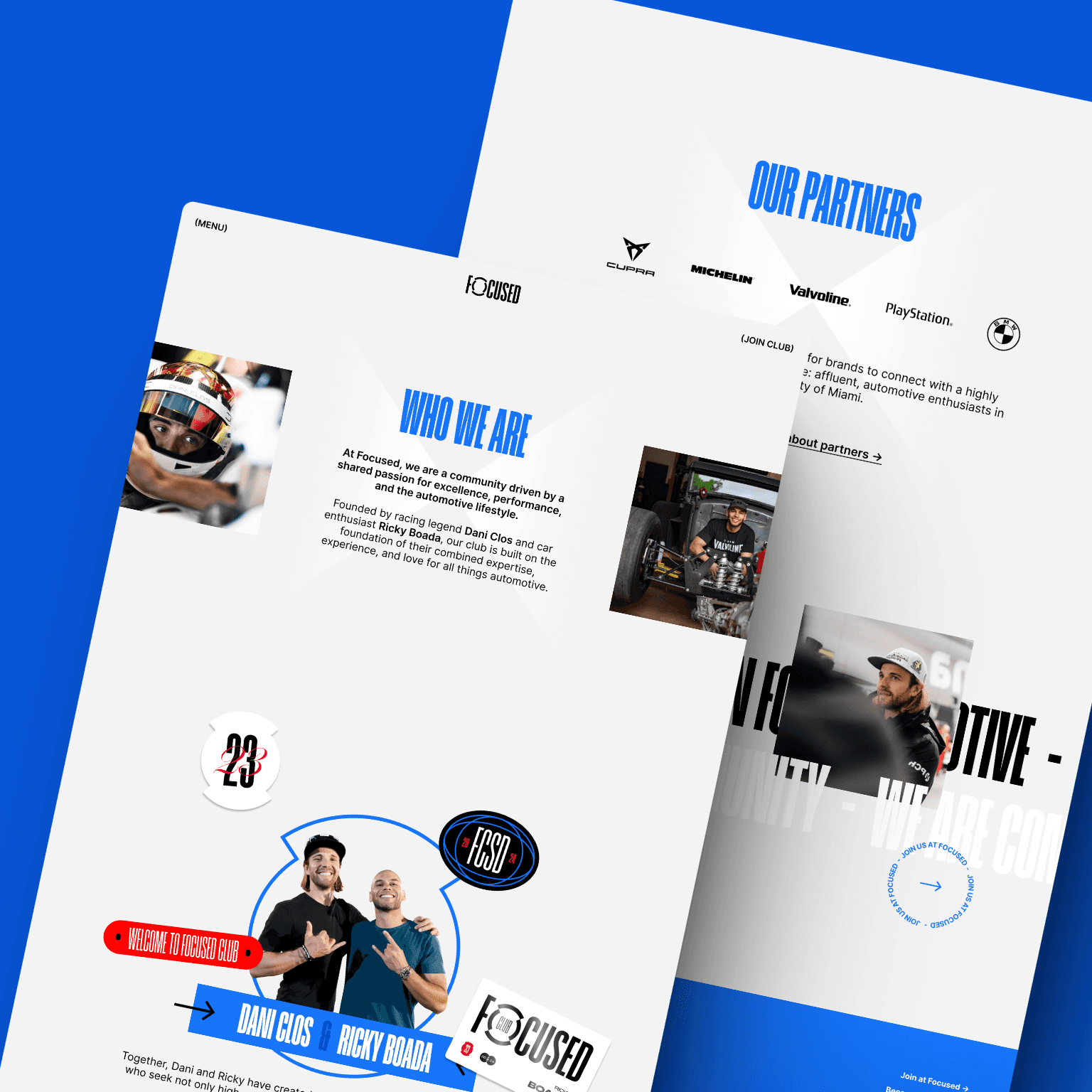 Además, desarrollamos el diseño completo de la web del club, enfocándonos en crear una experiencia digital inmersiva y funcional. La navegación fluida y el diseño visual impactante permiten a los visitantes entender de inmediato el espíritu del club, acceder a eventos exclusivos y conectar con otros miembros. También diseñamos la sección dedicada al servicio de alquiler de coches de alto rendimiento, un área reservada exclusivamente para los miembros de Focused, cuidando que el diseño reflejara la misma sensación de exclusividad y emoción que caracteriza a todo el proyecto.